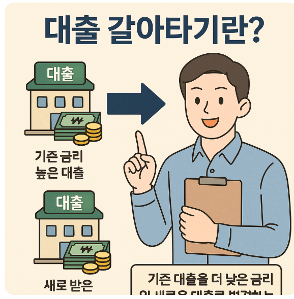 대출 갈아타기(리파이낸싱)는 금리를 낮춰 이자를 절약하는 똑똑한 금융 전략이에요.