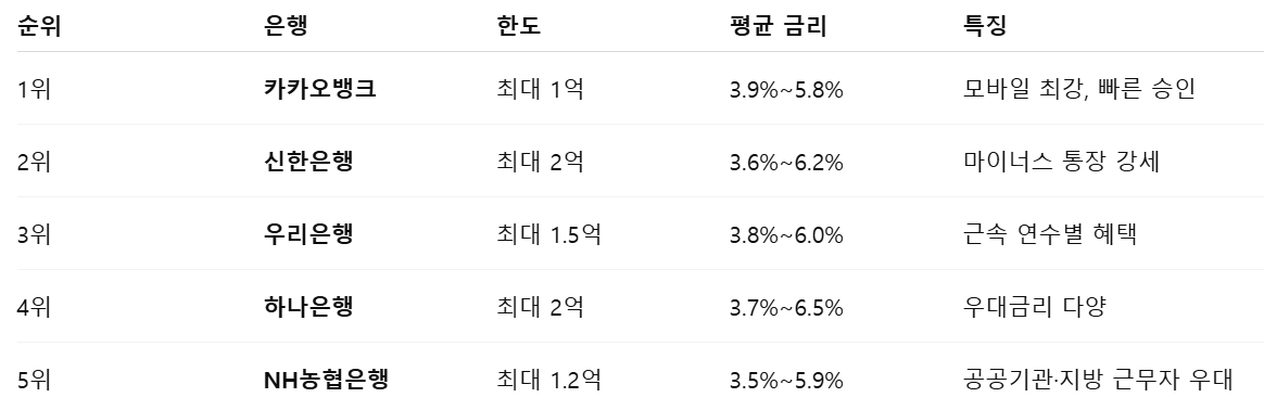 ㅜ2025년 기준, 직장인 대출 가능한 은행 순위와 추천 이유를 정리했습니다. 1금융권부터 모바일 전문은행까지, 직장인 대출 조건, 이자율, 승인 속도를 비교해 직장인에게 최적화된 대출 상품을 소개합니다. 직장인 소득 조건에 맞는 은행 선택 전략과 실제 후기도 반영했습니다.