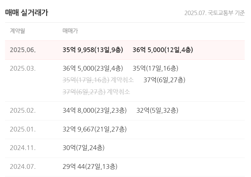2024년 7월 초 기준으로 국토교통부 실거래가 공개시스템과