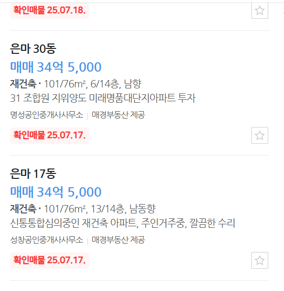 호가를 보면 현재 최저가가 34억원을 기록하는걸 확인할 수있어요.